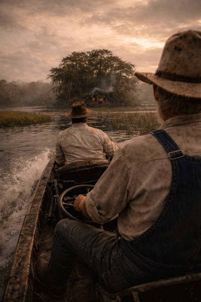 Twenty minutes later, they were skimming across sawgrass at speeds that felt illegal in three counties. The swamp opened up, closed in, then revealed an isolated little island squatting in the middle of nowhere like it had something to hide.